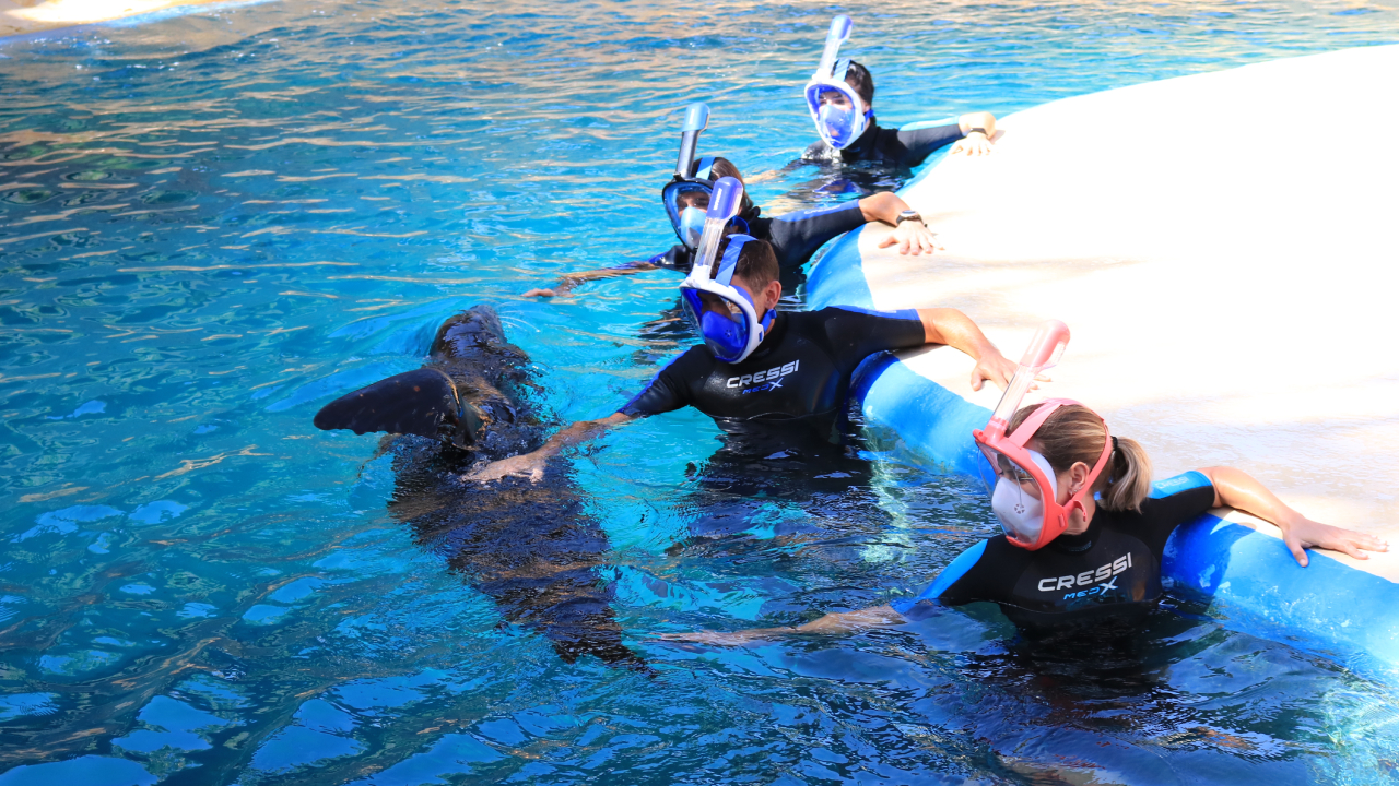 – De todas las experiencias disponibles, de momento solo quedan activas el encuentro con delfines, nadar con leones marinos y entrenador por un día. La experiencia seguirá siendo única y especial y podrás disfrutar de la compañía de estos fantásticos animales siguiendo exactamente la misma dinámica, pero llevando obligatoriamente una máscara de snorkel una vez que hayas entrado en el agua con el animal. También será obligatoria la mascarilla quirúrgica durante toda la visita.