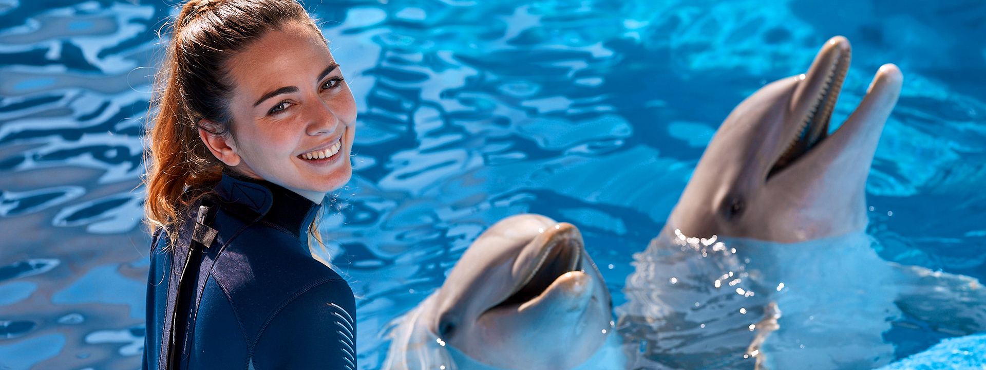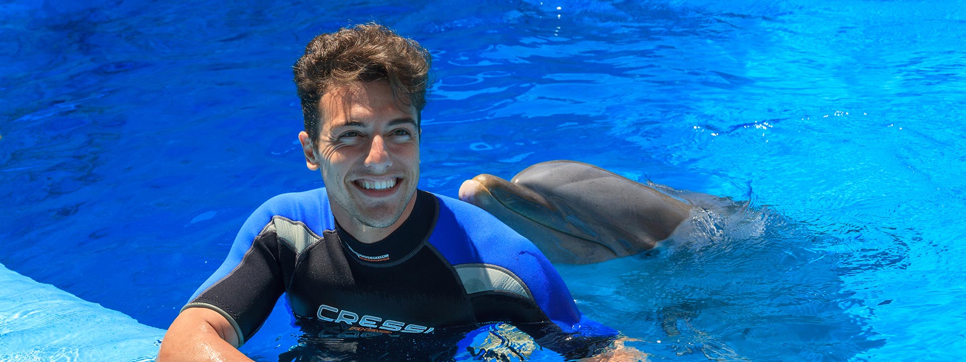 ¿Te gustaría nadar como los delfines? El encuentro con delfines te permite estar muy cerca de estos simpáticos y agradables animales. En compañía de sus cuidadores podrás conocer más detalles sobre su biología y fisiología, conocer aspectos de su comportamiento como por ejemplo cómo se mueven al nadar en el agua o cuál es su alimento favorito.