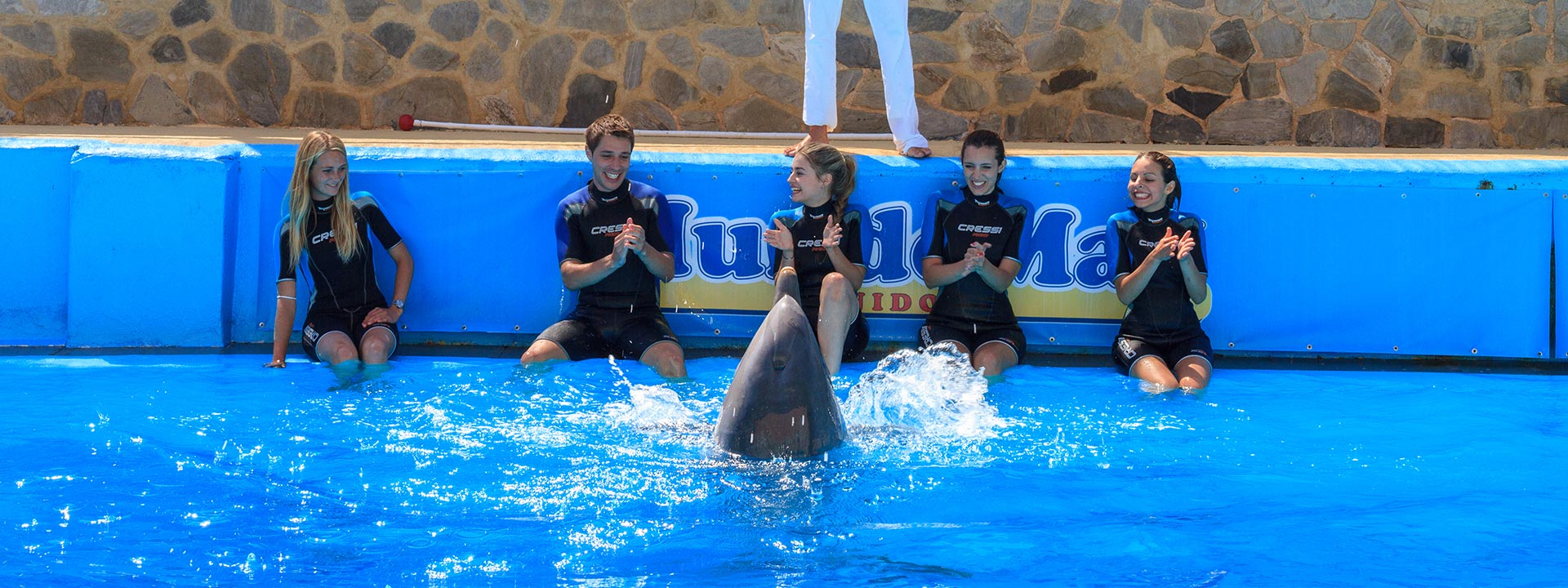 - Por razones de seguridad, esta actividad requiere que los participantes puedan permanecer tranquilos y seguir las indicaciones de los entrenadores en todo momento. Aquellas personas que puedan tener dificultades para cumplir con estos requisitos no podrán participar. Para quienes necesiten un enfoque terapéutico, la Fundación Mundomar ofrece programas gratuitos de delfinoterapia adaptados a diferentes tipos de discapacidad.